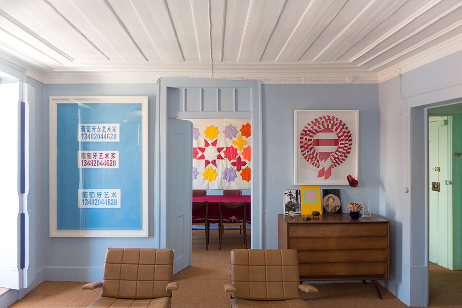 Outra peça forte: a cadeira cortada ao meio e colada na parede. Comecei por pensar nela como uma metáfora da sua timidez e da sua dificuldade em comunicar. A cadeira está destituída daquela que é a sua função inicial, que é servir de assento; estar virada contra a parede, de costas voltadas para a sala, o que a isola mais ainda. Mas esta é só a minha narrativa. Se as suas peças são contentores, o normal é que cada espectador projecte lá as suas narrativas.